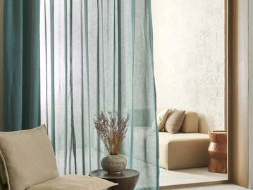 Whispering elegance flows through airy sheers, filtering light where transparency dances with textured embrace